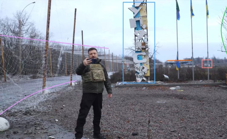 Σε βίντεο που αναρτήθηκε στον λογαριασμό που έχει στα μέσα κοινωνικής δικτύωσης, φαίνεται ο Ζελέσνκι φορώντας αλεξίσφαιρο γιλέκο να στέκεται στην είσοδο της πόλης Κουπιάνσκ όπου υπάρχει και η σχετική επιγραφή με το όνομα της πόλης.