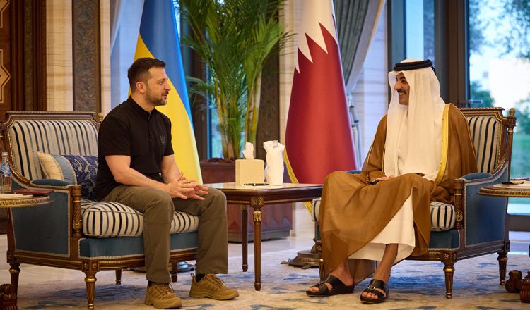 Το Κατάρ επισκέφθηκε την Τετάρτη ο πρόεδρος της Ουκρανίας Βολοντίμιρ Ζελένσκι, ο οποίος συνάντησε τον εμίρη Ταμίμ μπιν Χάμαντ αλ Θάνι.