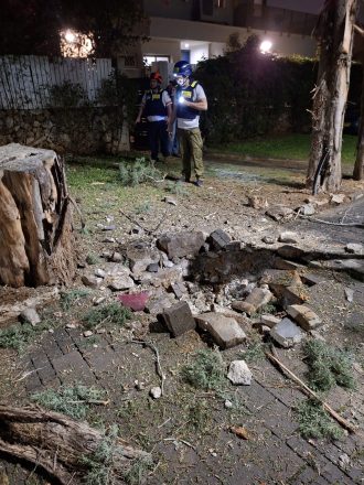 Καρέ καρέ η στιγμή που πύραυλος χτύπησε περιοχή στο Τελ Αβίβ σήμερα τα ξημερώματα.