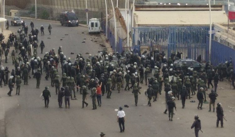 Οι μαροκινές δυνάμεις ασφαλείας απώθησαν χθες Κυριακή εκατοντάδες μετανάστες, Μαροκινούς και αλλοδαπούς, που προσπαθούσαν να εισέλθουν παράτυπα στον ισπανικό θύλακα Θέουτα, έπειτα από παροτρύνσεις μέσω ιστότοπων κοινωνικής δικτύωσης, διαπίστωσε φωτοειδησεογράφος του Γαλλικού Πρακτορείου.