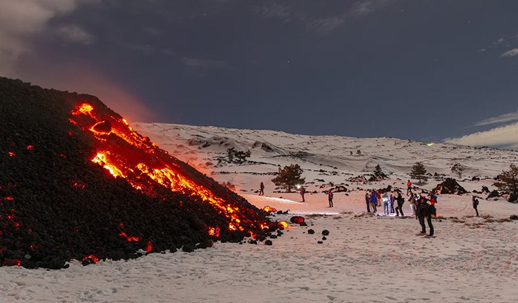 «Έχω δει πολλές φωτογραφίες και βίντεο με ανθρώπους να βρίσκονται επικίνδυνα κοντά στο μέτωπο, ακόμη και να κάνουν σκι», δήλωσε ο Carlo Caputo, δήμαρχος του Belpasso, μιας κοντινής πόλης. «Αν και οπτικά εντυπωσιακό, τους εκθέτει σε σοβαρούς κινδύνους, καθώς η λάβα, αλληλοεπιδρώντας με το χιόνι, μπορεί να το εξατμίσει αμέσως και, με τη θερμική ενέργεια που απελευθερώνεται, μπορεί να εκσφενδονίσει βίαια θραύσματα ή πέτρες».