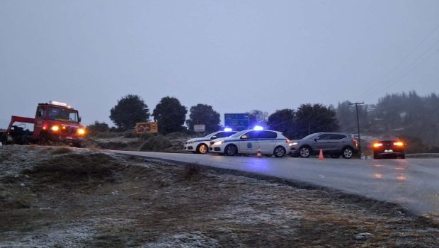Η έντονη χιονόπτωση και οι δυνατοί άνεμοι κάλυψαν γρήγορα το δρόμο με χιόνι και πάγο, δημιουργώντας αλυσιδωτά προβλήματα και εγκλωβίζοντας δεκάδες οδηγούς και επιβάτες.