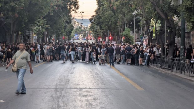 Η πορεία ξεκίνησε λίγο μετά τις 19:00 και κατευθύνεται προς τα Προπύλαια, όπου βρίσκεται το περίπτερο της διεθνούς αποστολής Global Sumud Flotilla με προορισμό τη Γάζα.