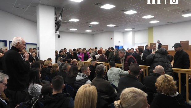 Μέχρι τις 09:00, όταν η πρόεδρος Γεωργία Στεφανίδου και η σύνθεση του δικαστηρίου εισήλθαν στην αίθουσα, ο χώρος ήταν ασφυκτικά γεμάτος, με αποτέλεσμα να προκληθούν αντεγκλήσεις μεταξύ εκπροσώπων του Τύπου και συγγενών αλλά και με κατηγορουμένους που έδωσαν το «παρών».
