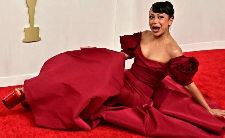 Συγκεκριμένα, η Liza Koshy πόζαρε με την κόκκινη Marchesa τουαλέτα της έξω από το Dolby Theatre, όταν έπεσε προσπαθώντας να πάρει θέση για τους φωτογράφους και τα τηλεοπτικά συνεργεία.