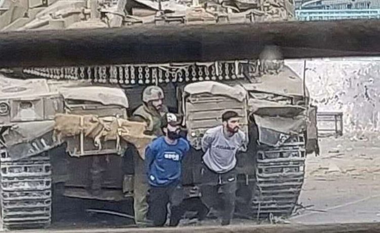 Παλαιστίνιος φορώντας μόνο το εσώρουχό του και δεμένος πισθάγκωνα αναγκάζεται να προπορευτεί εντός βομβαρδισμένου κτιρίου