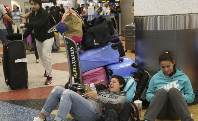 Χαρακτηριστικές είναι οι εικόνες επιβατών που ξάπλωσαν στο πάτωμα στο αεροδρόμιο Τζωρτζ Μπους του Χιούστον καθώς οι ουρές για τους ελέγχους διαβατηρίων δεν είχαν τέλος.