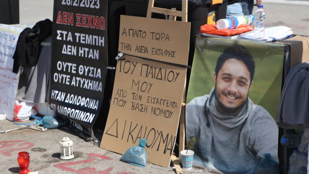 Έξω από τη Βουλή, όπου βρίσκεται για 12η συνεχόμενη ημέρα, κάνοντας απεργία πείνας, έμαθε την απόφαση της Εισαγγελίας Πρωτοδικών Λάρισας για το αίτημα εκταφής της σορού του παιδιού του ο Πάνος Ρούτσι.