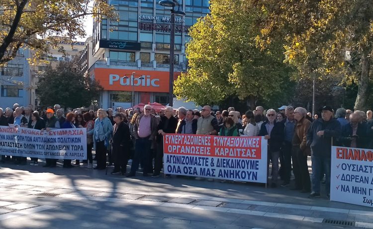 «Αξιοπρεπείς συνθήκες διαβίωσης» αξίωσαν σήμερα οι συνταξιούχοι στο πλαίσιο πανθεσσαλικής συγκέντρωσης διαμαρτυρίας που πραγματοποίησαν στην κεντρική πλατεία της Λάρισας.