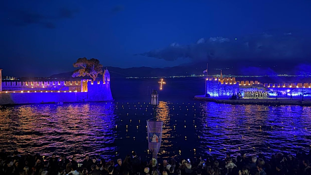 Το βράδυ της Μεγάλης Παρασκευής, το Ενετικό Λιμάνι στη Ναύπακτο μεταμορφώνεται σε ένα σκηνικό σπάνιας ομορφιάς και συγκίνησης. Οι δεκάδες αναμμένες δάδες στις πολεμίστρες των τειχών και ο φλεγόμενος σταυρός στην είσοδο του λιμανιού (κεντρική φωτογραφία) δημιουργούν μία ξεχωριστή εικόνα, όπου η παράδοση συναντά τη συγκίνηση του θείου Δράματος.