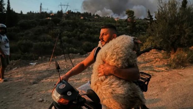 Αν μια εικόνα ισούται με χίλιες λέξεις, στην περίπτωση αυτή η συγκεκριμένη εικόνα από την Πάτρα, με ένα νέο παλικάρι να έχει πάρει το πρόβατο αγκαλιά για να το σώσει από τις πυρκαγιές, είναι η χώρα που είμαστε περήφανοι για τους πολίτες της.
