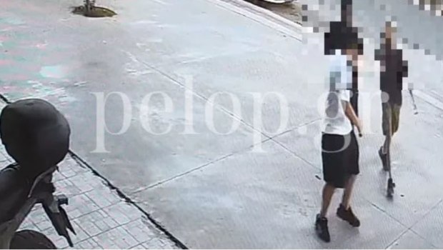 Οι τρεις ανήλικοι κινούνταν σε αντίθετη κατεύθυνση, όταν ξαφνικά άλλαξαν πορεία. Ο ανήλικος με την λευκή μπλούζα κατευθύνεται απειλητικά προς τον 15χρονο και τον χτυπά συνεχόμενα, ρίχνοντάς τον στο έδαφος.