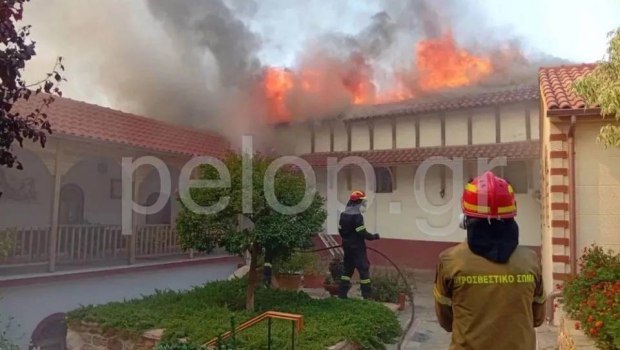Η φωτιά που καίει την Αχαΐα έφτασε και στο μοναστήρι.