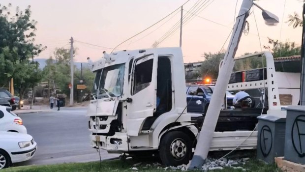 Περιστέρι: Τροχαίο με γερανοφόρο όχημα – Έσπασαν τα φρένα, το εγκατέλειψε ο οδηγός και έπεσε σε κολώνα