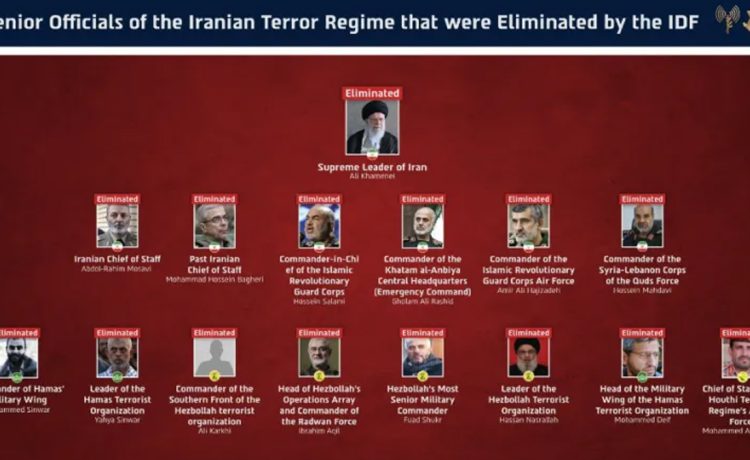 Η εξάλειψη του Αλί Χαμενεΐ αποτελεί την κορύφωση μιας συνεχούς προσπάθειας για την εξάλειψη της ανώτερης ηγεσίας του ιρανικού άξονα τρομοκρατίας καθ’ όλη τη διάρκεια του «Πολέμου της Αναγέννησης», συμπεριλαμβανομένων: του Χασάν Νασράλα, ηγέτη της τρομοκρατικής οργάνωσης Χεζμπολάχ, μαζί με την πλειοψηφία της ανώτερης ηγεσίας της Χεζμπολάχ, τον Γιαχία Σινουάρ, ηγέτη της τρομοκρατικής οργάνωσης Χαμάς, Μοχάμεντ Ντέιφ, Διοικητή της Στρατιωτικής Πτέρυγας της Χαμάς, καθώς και την πλειοψηφία της ηγεσίας της Στρατιωτικής Πτέρυγας της Χαμάς, τον Μουχάμαντ αλ-Γκαμάρι, Αρχηγό του Γενικού Επιτελείου του τρομοκρατικού καθεστώτος των Χούθι, μιας σειράς ανώτερων διοικητών στην ιρανική αμυντική ηγεσία, συμπεριλαμβανομένου του Γκολάμ Αλί Ρασίντ, διοικητή του Κεντρικού Αρχηγείου Χατάμ-αλ Ανμπίγια, του Μοχάμεντ Μπαγκέρι, Αρχηγού του Επιτελείου των Ιρανικών Ενόπλων Δυνάμεων, και του Χοσεΐν Σαλαμί, διοικητή του Φρουρού της Επανάστασης, και άλλων αξιωματούχων.