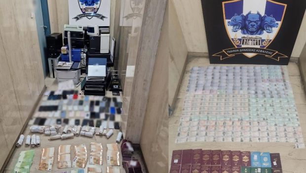 Επίσης, εντοπίστηκαν -4- πλήρως εξοπλισμένα εργαστήρια νόθευσης ταξιδιωτικών εγγράφων τα οποία διέθεταν σπάνιο εξοπλισμό τελευταίας τεχνολογίας, ο οποίος χρειάζεται ειδικές γνώσεις και τεχνικές για τον χειρισμό του (εκτυπωτές laser, laptop, χαράκτες, πλαστικοποιητές κλπ).