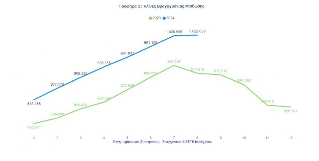 Η ανάλυση των στοιχείων για τον αριθμό των κλινών βραχυχρόνιας μίσθωσης μεταξύ 2023 και 2024 αποκαλύπτει μια σημαντική αύξηση κατά το Α’ εξάμηνο του 2024. Από τον Ιανουάριο μέχρι και τον Ιούλιο, ο αριθμός των κλινών αυξανόταν σταθερά, ξεπερνώντας τον Ιούλιο το 1 εκατ. κλίνες, +82 χιλ. κλίνες υψηλότερα από τον Ιούλιο του 2023.