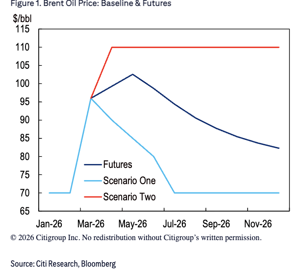 Δύο σενάρια για την παγκόσμια οικονομία από τον πόλεμο στη Μέση Ανατολή και την πορεία των τιμών του πετρελαίου κατάρτισε η Citigroup, θεωρώντας πως η διάρκεια των αναταραχών στα Στενά του Ορμούζ θα καθορίσει τις εξελίξεις.