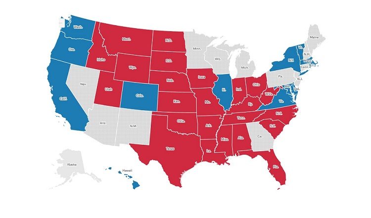 Δείτε στο διαδραστικό χάρτη του Reuters (πατώντας εδώ) πως διαμορφώνονται Πολιτείες και εκλέκτορες σε διαρκή ενημέρωση