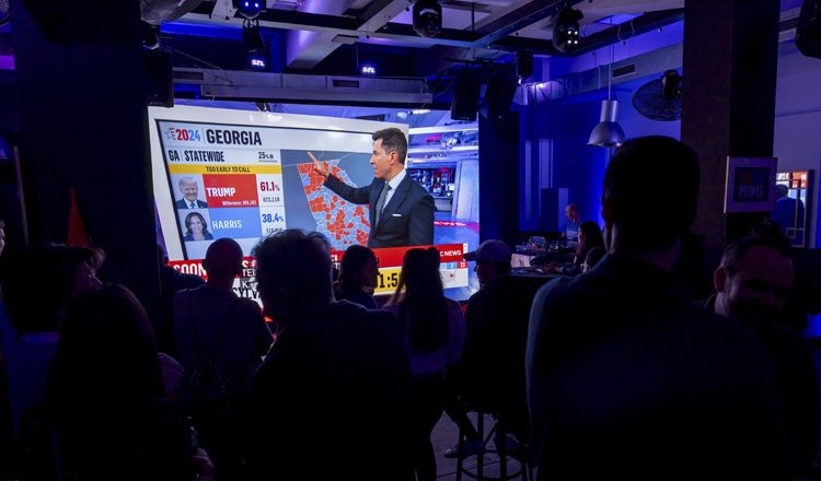 Σύμφωνα με την αμερικανική εταιρεία δημοσκοπήσεων Edison Research, με καταμετρημένο το 32,3% των ψήφων, ο Τραμπ προηγείται με 55,6% έναντι 43,9% της Χάρις.