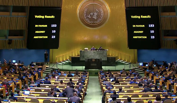 Είναι μία «λακωνική» διατύπωση πολύ διαφορετική από τα προηγούμενα κείμενα της Γενικής Συνέλευσης που υποστήριζαν την Ουκρανία καταδικάζοντας την ρωσική εισβολή.