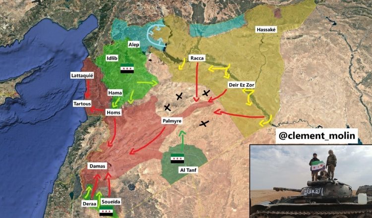 Η Μόσχα και η Τεχεράνη έσπευσαν στο πλευρό του σύρου προέδρου Μπασάρ αλ-Άσαντ και τον βοήθησαν στρατιωτικά να συντρίψει την αντιπολίτευση, ενώ η Άγκυρα, χωρίς να εμπλέκεται άμεσα στο πεδίο, παρατηρεί ευμενώς τις προόδους που σημειώνουν τα κινήματα των ανταρτών.