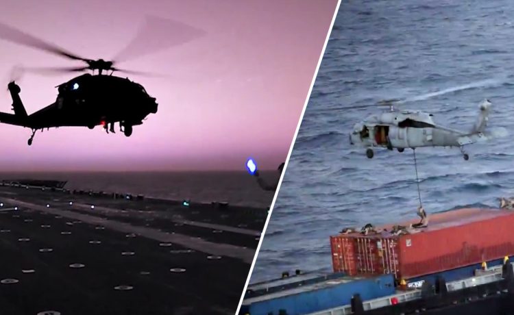 Αμερικανοί πεζοναύτες επιβιβάστηκαν σήμερα (28/4), σε πλοίο μεταφοράς εμπορευματοκιβωτίων στην Αραβική Θάλασσα.
