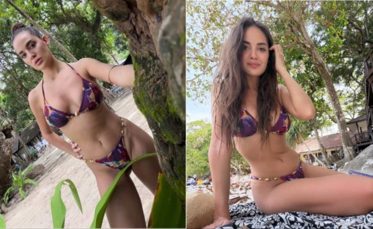 Στα εν λόγω στιγμιότυπα, η ίδια πόζαρε στην παραλία Κοχ Σαμούι, φορώντας ένα εμπριμέ μπικίνι με χρυσές αλυσίδες.