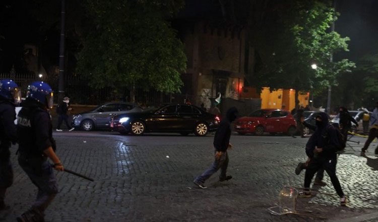Όταν όλοι σχεδόν οι διαδηλωτές είχαν αποχωρήσει, δυο ομάδες ατόμων με καλυμμένο το πρόσωπο έβαλαν φωτιά σε κάδους απορριμμάτων, στην κεντρική περιοχή γύρω από την βασιλική της Σάντα Μαρία Ματζιόρε. Πυρπόλησαν και κατέστρεψαν, επίσης, σειρά παρκαρισμένων αυτοκινήτων. Η αστυνομία έκανε χρήση δακρυγόνων και η συγκεκριμένη περιοχή απομονώθηκε για μία περίπου ώρα.
