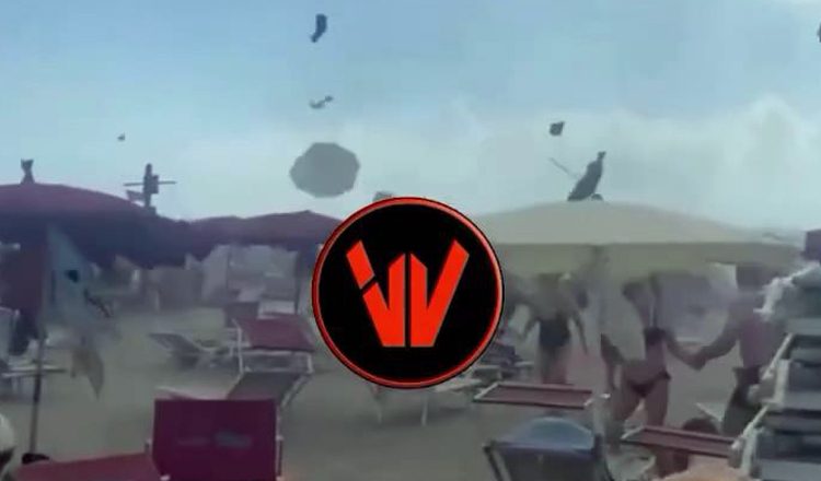 Συγκλονιστικές στιγμές σε ένα τμήμα της παραλίας του Μακαρέζε, στη βόρεια ακτή της Ρώμης, όπου ένας ανεμοστρόβιλος σήκωσε πολλές ομπρέλες σε ύψος αρκετών μέτρων.