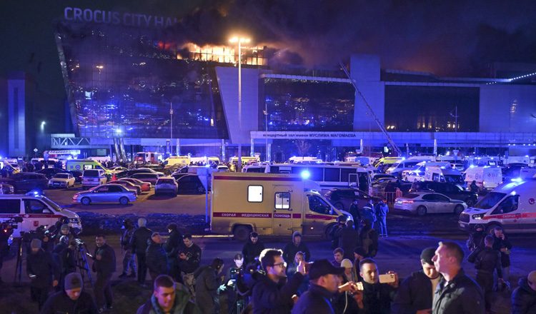 Στις 22 Μαρτίου ένοπλοι άνδρες εισέβαλαν στον συναυλιακό χώρο Crocus City Hall, κοντά στη Μόσχα, και άνοιξαν πυρ εναντίον του πλήθους που βρισκόταν εκεί προτού πυρπολήσουν το κτίριο. Τουλάχιστον 144 άνθρωποι σκοτώθηκαν και 360 τραυματίστηκαν στην επίθεση αυτή.