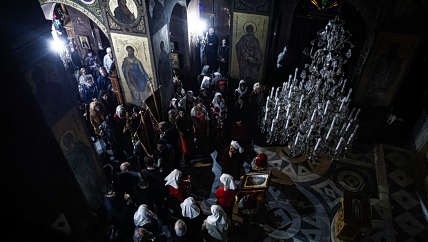 Τον χαρμόσυνο τόνο έδωσε ο προϊστάμενος του ναού, π. Συνέσιος Βικτωράτος, ο οποίος αντάλλαξε ευχές με Έλληνες, Ρώσους και κάποιους τουρίστες που είχαν κατακλύσει τον ναό. Μετά την τελετή, πολλοί έσπευσαν να μαζέψουν θραύσματα από τις στάμνες για «καλοτυχία», ενώ έξω από τον ναό οι ιερείς ευλόγησαν τα πασχαλινά αυγά και τα εδέσματα των πιστών.