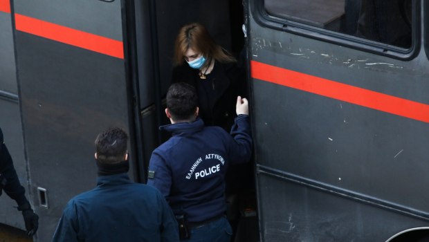 Κρατώντας μπαστούνι εμφανίστηκε σήμερα η Ρούλα Πισπιρίγκου η οποία μεταφέρθηκε στο Μεικτό Ορκωτό Εφετείο της Αθήνας από τις φυλακές, για την εκδίκαση της υπόθεσης που αφορά τις δολοφονίες των δύο μικρότερων κοριτσιών της, της Μαλένας και της Ίριδας.