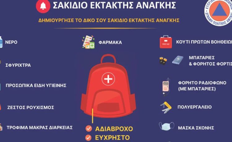 Εν μέσω της αυξανόμενης έντασης στη Μέση Ανατολή και στον απόηχο της επίθεσης με drone στη βρετανική βάση στο Ακρωτήρι, το υπουργείο Εσωτερικών της Κύπρου απευθύνει σύσταση προς τους πολίτες να προετοιμάσουν προληπτικά ένα ατομικό σακίδιο έκτακτης ανάγκης.