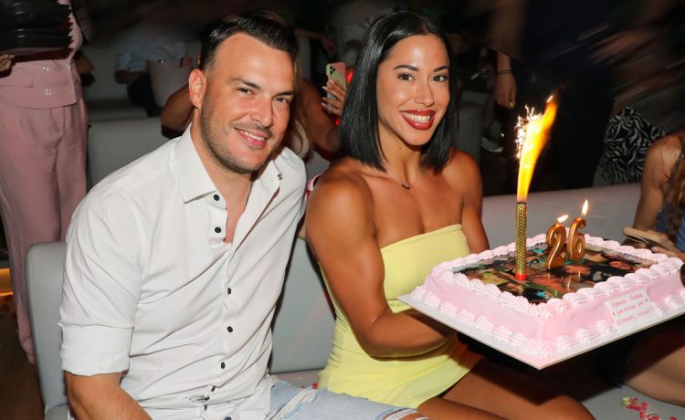 Ο Σάκης Αρσενίου γιόρτασε τα γενέθλια της αγαπημένη του, Λαμπρινής Πλεύρη στο κέντρο όπου εμφανίζεται ο Πάνος Καλίδης.