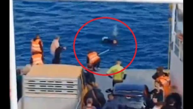 Οι επιβάτες παρακολουθούσαν με κομμένη την ανάσα, την επιχείρηση διάσωσης του άνδρα, από τα μέλη του πληρώματος του φέρι μποτ.