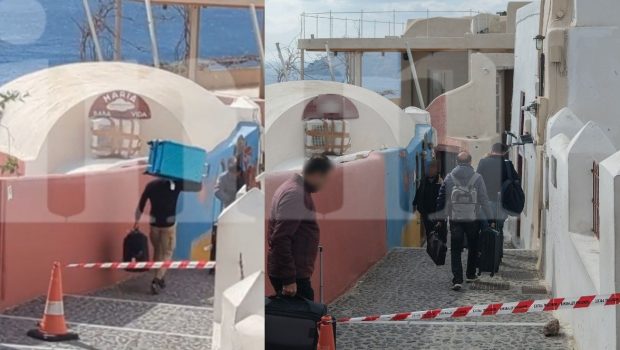 Ωστόσο όπως φαίνεται και στις αποκλειστικές εικόνες το in τουρίστες με τις αποσκευές τους περνούν πάνω από τις κορδέλες αψηφώντας τον κίνδυνο και τις προειδοποιήσεις των Αρχών.