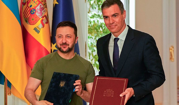 Η συμφωνία ασφαλείας που υπέγραψαν σήμερα η Ισπανία και η Ουκρανία κατά την επίσημη επίσκεψη του Βολοντίμιρ Ζελένσκι στη Μαδρίτη περιλαμβάνει στρατιωτική βοήθεια της Μαδρίτης ύψους ενός δισεκατομμυρίου ευρώ, όπως ανακοίνωσε ο Ισπανός πρωθυπουργός Πέδρο Σάντσεθ.