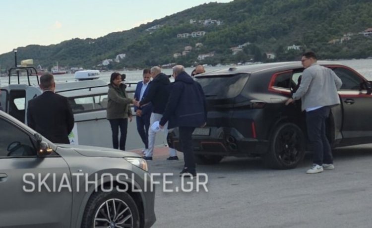 Στο αεροδρόμιο της Σκιάθου τον υποδέχθηκε ο δήμαρχος του νησιού, Θοδωρής Τζούμας, ενώ στη συνέχεια κατευθύνθηκε, υπό διακριτικά μέτρα ασφαλείας, στη βίλα όπου διέμεινε.