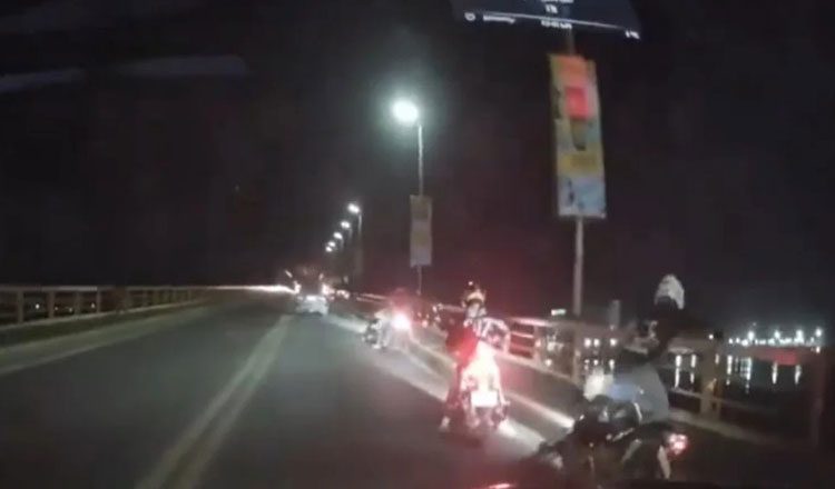 Το βίντεο είναι από γέφυρα και δείχνει οδηγούς να έχουν τρομοκρατηθεί από την ισχυρή σεισμική δόνηση.