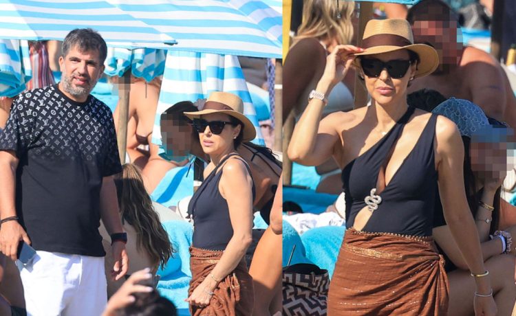 Η γνωστή interior architect & designer επέλεξε ένα ολόσωμο μαύρο μαγιό με ένα καφέ παρεό και τράβηξε όλα τα βλέμματα πάνω της.