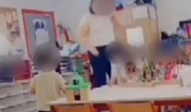 Συγκεκριμένα, στο βίντεο φαίνεται η δασκάλα να χτυπάει το τρίχρονο κορίτσι, ενώ στη συνέχεια το ψεκάζει με ένα άγνωστο υγρό στο πρόσωπο του, καθώς αυτό φωνάζει «μαμά».