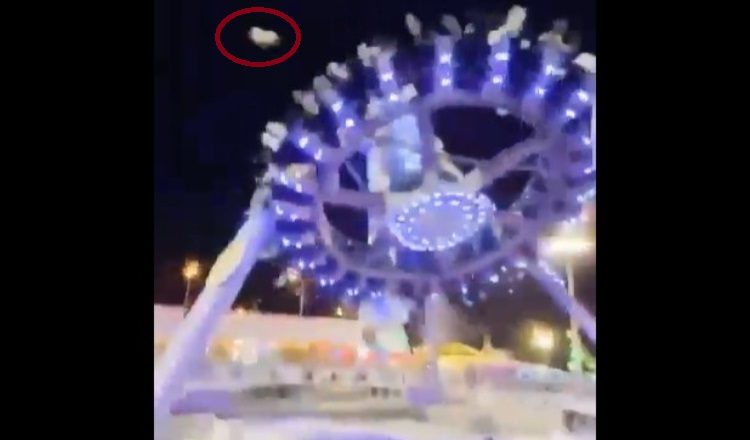 Βίντεο που κυκλοφόρησαν στα μέσα κοινωνικής δικτύωσης δείχνουν τους επισκέπτες να απολαμβάνουν τη… βόλτα τους στον τροχό, όταν ξαφνικά ο κεντρικός στύλος του παιχνιδιού έσπασε στα δύο και κατέρρευσε με έντονο θόρυβο, την ώρα που οι επιβάτες βρίσκονταν πάνω του. Μάλιστα, ένας από τους καθισμένους στο παιχνίδι επισκέπτες εκσφενδονίστηκε από το παιχνίδι και τον βίντεο αποτύπωσε την στιγμή.
