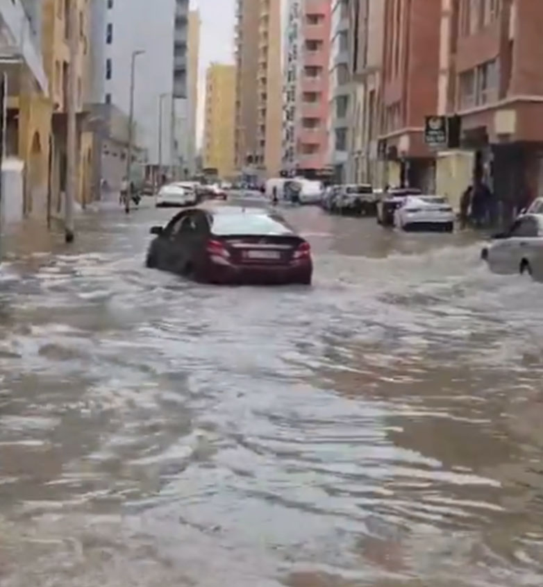 Νωρίς σήμερα το πρωί μια από τις βασικές οδικές αρτηρίες της Σάρτζα είχε καλυφθεί από νερό και περαστικοί διέσχιζαν τον δρόμο χωρίς παπούτσια και με σηκωμένα τα μπατζάκια των παντελονιών τους.