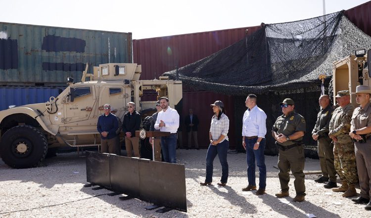 Ο Βανς, που καλλιεργεί εικόνα ενθουσιώδους και πιστού στρατιώτη του προέδρου αφότου ο Ρεπουμπλικάνος επέστρεψε στον Λευκό Οίκο, συνοδευόταν από τον υπουργό Άμυνας Πιτ Χέγκσεθ, ο οποίος διέταξε την περασμένη εβδομάδα την ανάπτυξη άλλων 3.000 στρατιωτικών κατά μήκος αυτών των συνόρων.