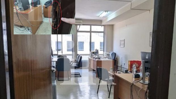 Όταν επέστρεψε η ίδια στις 14.10 βρήκε την πόρτα του γραφείου παραβιασμένη και στη συνέχεια τον ενημέρωσε για το συμβάν.
