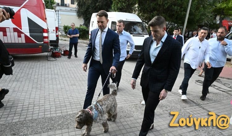 Στα γραφεία του ΣΥΡΙΖΑ στην Κουμουνδούρου έφτασε λίγο μετά τις 19:00 ο Στέφανος Κασσελάκης μαζί με τον σύζυγό του Τάιλερ προκειμένου να παρακολουθήσουν τα αποτελέσματα των ευρωεκλογών. Μαζί τους ήταν και η σκυλίτσα τους, η Φάρλι, την οποία μάλιστα πήγαν βόλτα προτού εισέλθουν στα γραφεία του κόμματος.