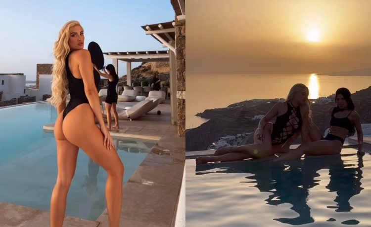 Η γνωστή influencer και επιχειρηματίας φορώντας ένα σέξι ολόσωμο μαύρο μαγιό φαίνεται σε βίντεο που δημοσίευσε η ίδια στον προσωπικό της λογαριασμό στο Instagram να ποζάρει μπροστά από ειδικό εξοπλισμό για φωτογράφιση μαζί με τις υπόλοιπες γυναίκες, που φορούσαν επίσης μαύρα μαγιό.
