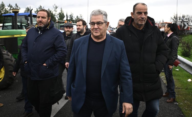Στο μπλόκο των αγροτών στη Νίκαια της Λάρισας βρέθηκε νωρίτερα σήμερα ο Γενικός Γραμματέας της Κεντρικής Επιτροπής του ΚΚΕ, Δημήτρης Κουτσούμπας, στο πλαίσιο της περιοδείας του στη Θεσσαλία, εκφράζοντας έμπρακτα τη στήριξη του κόμματος στις κινητοποίησεις των αγροτών και των κτηνοτρόφων.