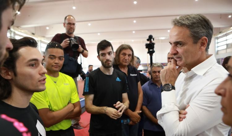 Στο προπονητήριο του ΟΑΚΑ ο Κυριάκος Μητσοτάκης με Τεντόγλου, Καραλή και Γκαβέλα